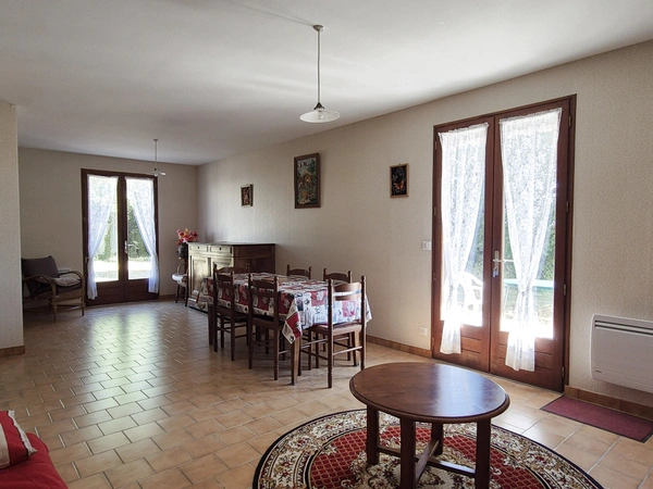 Dans un environnement calme, à seulement 10 minutes de Ruffec avec un accès rapide à la N10, venez découvrir ce pavillon de plain-pied offrant un cadre de vie paisible à la campagne. La maison se compose d'une entrée, d'une cuisine séparée, d'une pièce de vie lumineuse faisant office de salle à manger et salon, d'une chambre, d'une salle d'eau, ainsi que d'un WC séparé. Un garage attenant, déjà aménagé, peut facilement être transformé en seconde, voir troisième chambre selon vos besoins. À l'extérieur, vous serez séduit(e) par un jardin arboré, ainsi que par une belle grange en pierre, saine et spacieuse, parfaite pour un projet d'atelier, de dépendance ou de stockage. Ce bien offre un beau potentiel d'aménagement, dans un cadre verdoyant, à la fois tranquille et proche des commodités grâce à sa situation idéale à proximité de Ruffec. À découvrir sans tarder ! Les informations sur les risques auxquels ce bien est exposé sont disponibles sur le site Géorisques : www.georisques.gouv.fr. Honoraires : 7.02 % TTC de 84 000 euros (prix de vente honoraires exclus). Soit 89 900 euros honoraires inclus). Honoraires à la charge de l'acquéreur. Nos honoraires sont consultables sur www.noovimo.fr 1 - Annonce rédigée et publiée par un Agent Mandataire -