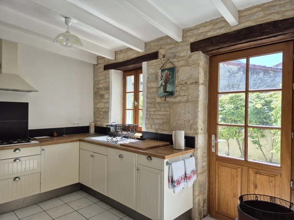 Située au coeur du village de Tusson, un village touristique prisé pour son patrimoine et son charme authentique, cette maison entièrement rénovée allie le cachet de l'ancien et le confort moderne. Composée de deux habitations attenantes, elle offre la possibilité de créer soit une grande maison familiale de quatre chambres, soit de conserver une partie en gîte indépendant. Chaque espace dispose d'une cuisine fonctionnelle, d'un salon chaleureux et de deux chambres lumineuses. Les pierres apparentes et les poutres préservent l'authenticité du lieu, tandis que la rénovation récente garantit un confort optimal, sans aucun travaux à prévoir. À l'extérieur, un joli jardin clos offre un cadre paisible et intimiste, idéal pour profiter pleinement des beaux jours. Un grand garage vient compléter l'ensemble, offrant un espace de rangement ou de stationnement appréciable. Grâce à l'attrait touristique de Tusson, cette maison représente une véritable opportunité pour un projet de location saisonnière, permettant de générer une rentabilité intéressante tout en profitant d'un cadre de vie exceptionnel. Que ce soit pour une résidence principale, un investissement locatif ou une maison de vacances, ce bien est à ne pas manquer !